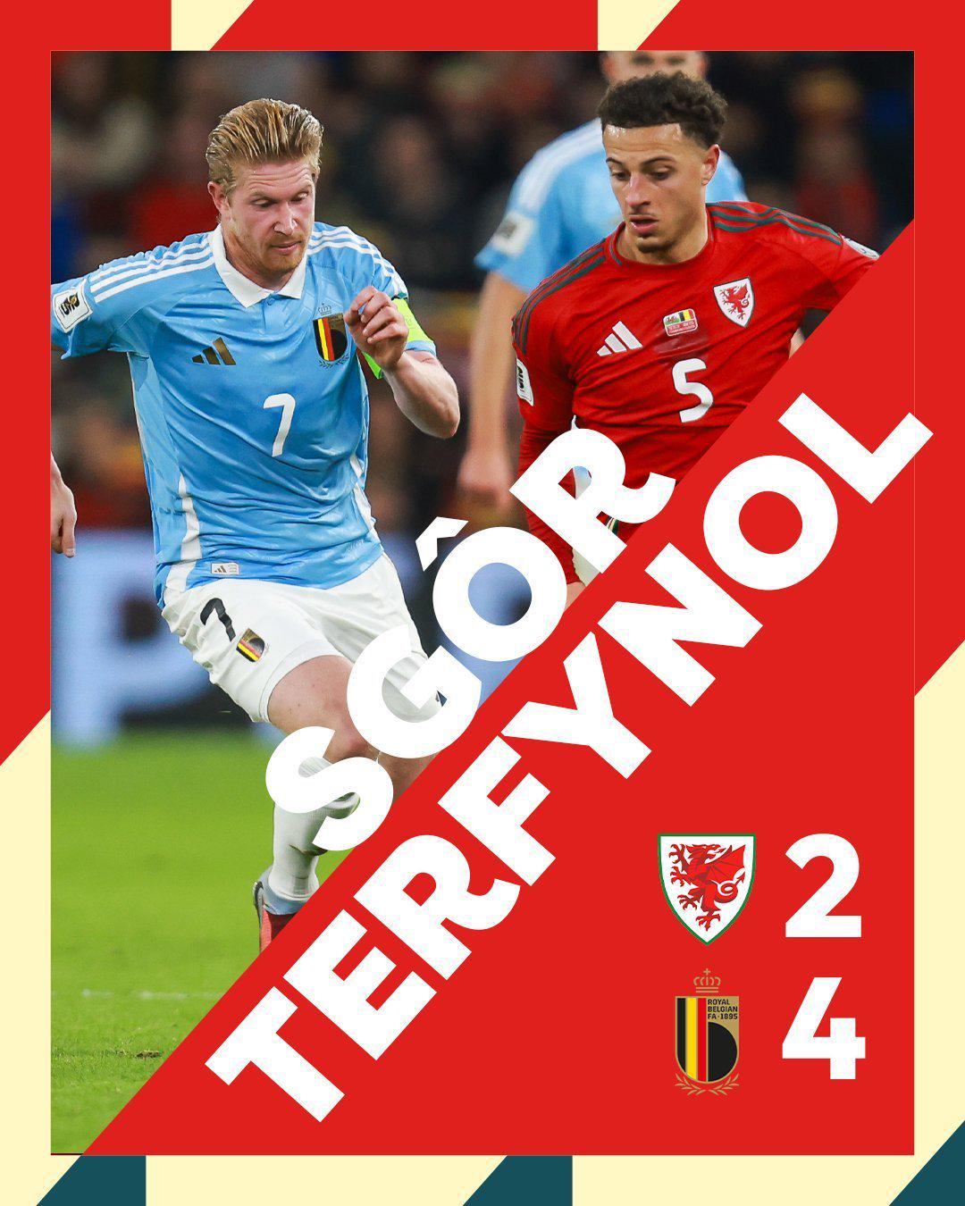 第81分钟,比利时大规模换人,福法纳、维特塞尔和梅切勒替补上场。8分钟后,威尔士扳回一球。布罗德黑德在禁区内推射破门。但是,很快威尔士就再次丢球。特罗萨德在空位下把球打进,杀死比赛悬念。最终比利时4-2逆转击败威尔士。曼城旧将德布劳内表现出色,他打进2球,送出3次关键传球。比利时6场不败,狂揽14分,排名小组第1。