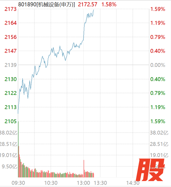 3月27日午后,A股机械设备板块拉升走强,涨幅近1.6%。